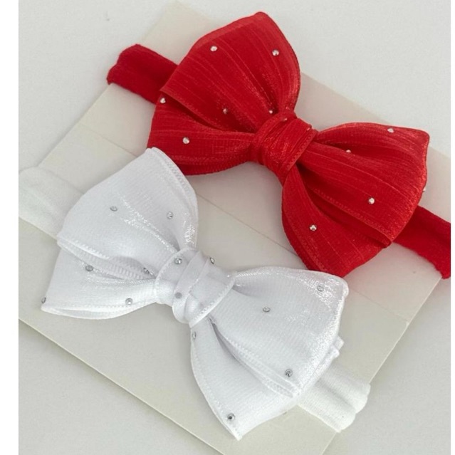 Faixa de Cabelo Bebê com Laço Delicado e Strass – Acessório Infantil Confortável