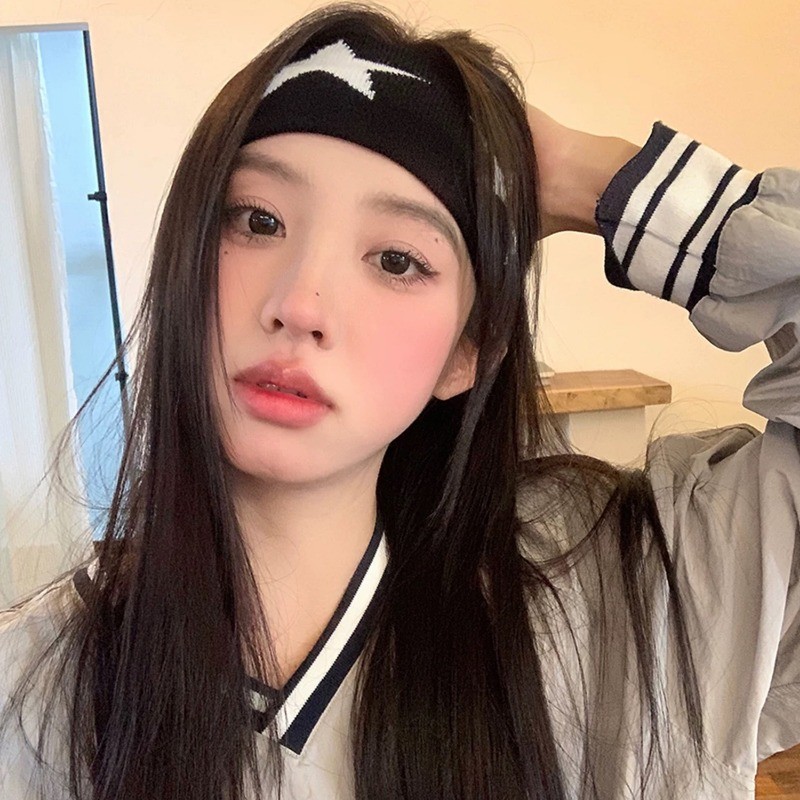 Faixa De Cabelo De Borda Larga Tricotada Estrela Masculina E Feminina – Argola Esportiva De Algodão Puro Para Meninas Pi