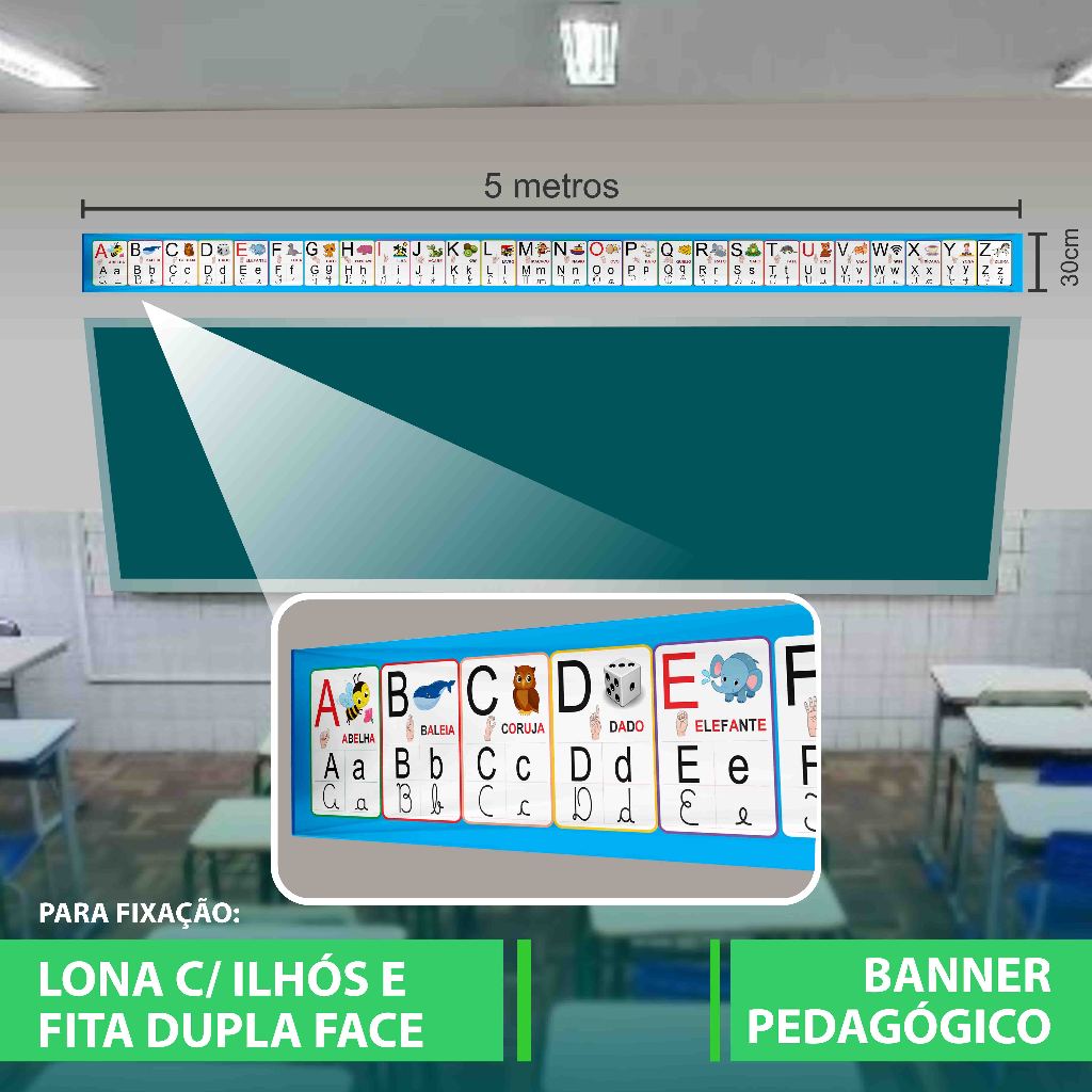 Faixa Pedagógica Alfabeto 4 Formas TAMANHOS: 3M X 25cm / 5M X 30cm A Faixa Pedagógica Alfabeto 4 Formas é uma excelente ferramenta para enriquecer o aprendizado das crianças! Perfeita para escolas, creches ou ambientes de ensino, ela auxilia no reconhecimento das letras do alfabeto de forma divertida e dinâmica. Use o Banner da Kradesivos para decorar e ensinar de maneira criativa! Também temos outros modelos e tamanhos, confira nos anúncios ou peça pelo campo de mensagens o que você precisa. INFORMAÇÕES SOBRE O BANNER: Impressão em Alta Definição Gramatura: 440g Uso externo e interno! ACABAMENTOS DISPONÍVEIS DO BANNER: Bastão com ponteiras e cordinha Ilhoses nos cantos Invista na educação com qualidade e estilo!