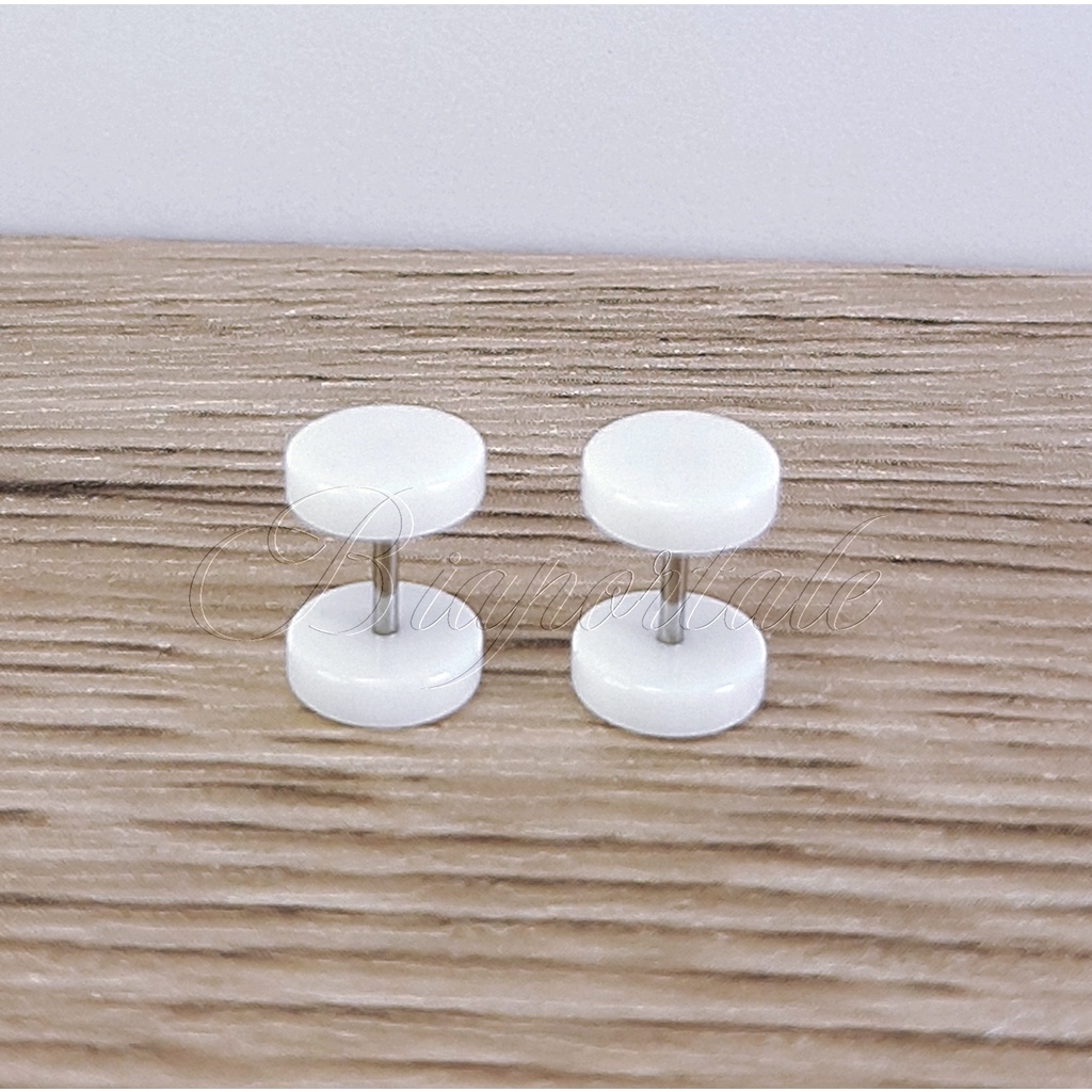 Falso Alargador Branco Par de Brincos em Aço e Acrílico Masculino Feminino