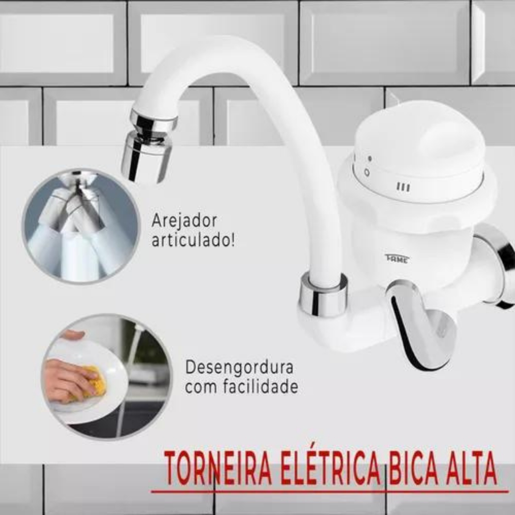 | Fame Bica Alta E Movél Acabamento Cromado Cor Branco Torneira Elétr... este produto | R$ 199,90 | — | 4.9/5 | 4 |