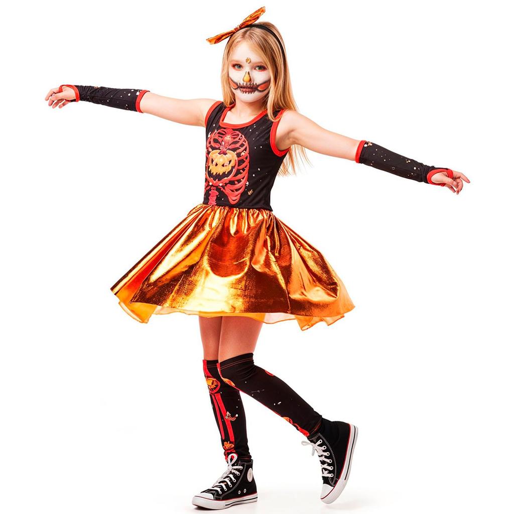 Fantasia Abobora Infantil de Halloween Com Polaina e Luva