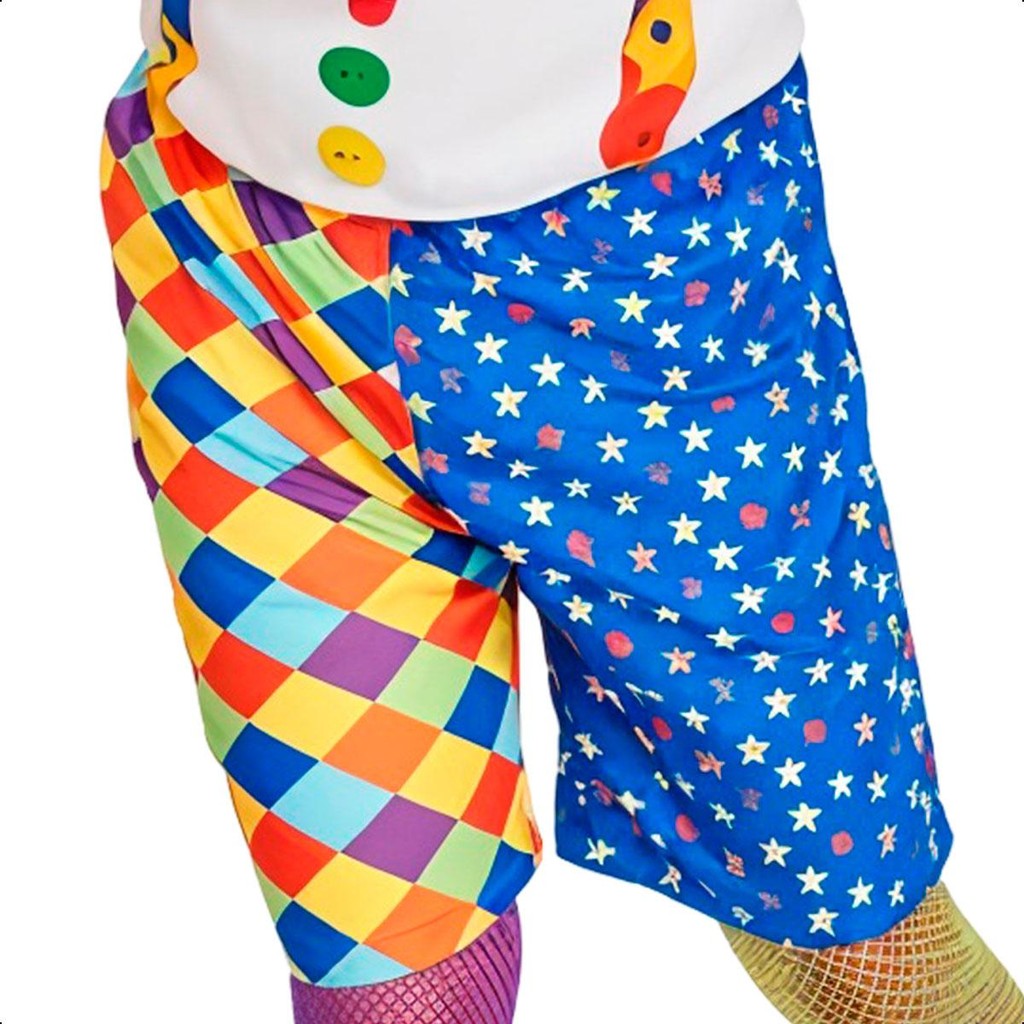 Itens inclusos: 01 - Regata 01 - Bermuda Dimensões do produto: P:Numeração de roupa tamanho 38 - 40 M:Numeração de roupa tamanho 42 - 44 G:Numeração de roupa tamanho 46 - 48 GG:Numeração de roupa tamanho 50 - 52 Ficou na dúvida de qual tamanho escolher? Sempre indicamos a escolha de um tamanho maior pois é mais fácil fazer um ajuste, caso necessário. Especificações Técnicas Material:100% Poliéster Cor:Multicolorido Produto:Novo, na embalagem. Produto a pronta entrega! Entre no clima do Carnaval com esta divertida fantasia de Palhaço Divertido Adulto Masculino! O traje inclui uma regata branca com estampas coloridas em alta resolução, como flores e gravata xadrez, além da bermuda com design de losangos e estrelas. Feito de 100% poliéster, é leve e confortável, ideal para festas temáticas, desfiles e eventos de circo. O visual vibrante e os detalhes, como elástico na cintura da bermuda, destacam o espírito palhaço, perfeito para se destacar. Não acompanha meias, sapatos ou acessórios adicionais, e a regata e bermuda são lisos, sem relevo ou botões reais. Fresca e Confortável Não Desbota Não Pinica Não desbota Não fica Transparente Alta Qualidade