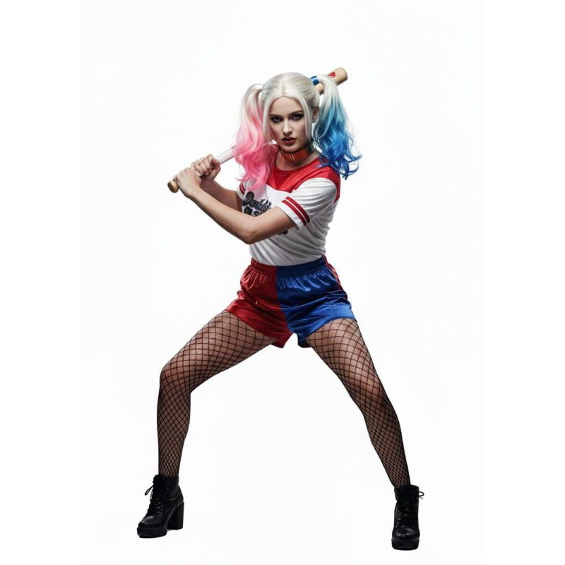 fantasia alerquina compelta com camiseta,short, bastão,peruca e meia calça arrastão. tamanhos adulto e adolescente