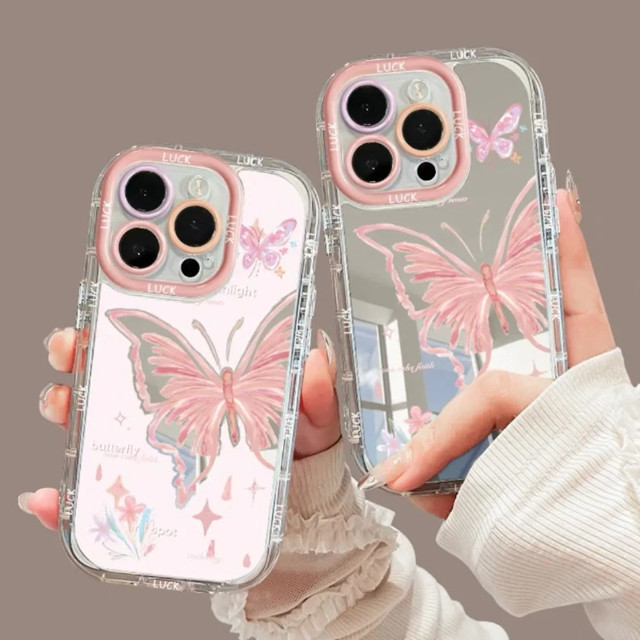 Fantasia Borboleta Flor Espelho Caso De Telefone Para iPhone 17 16E 15 14 13 12 11 Pro Max Plus XR XS Capa