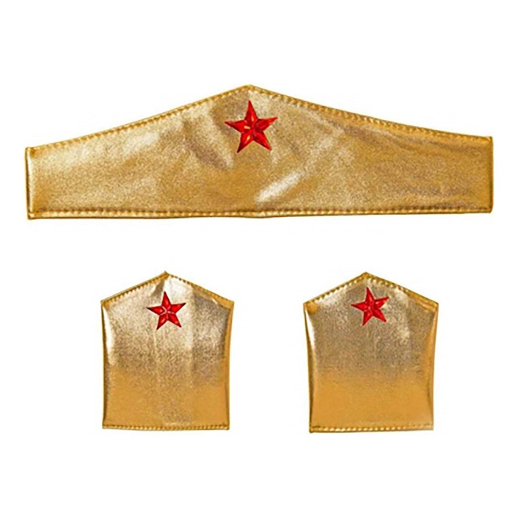 Fantasia Bracelete + Tiara Dourada Mulher Maravilha Heroína Carnaval Haloween Aniversário