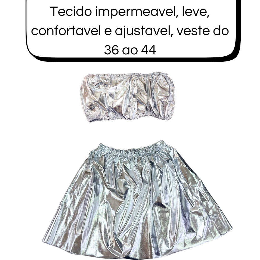 Fantasia Carnaval Brilhante Metalizada Bloquinho Festa balada Cropped e Saia Roupa Brilhante