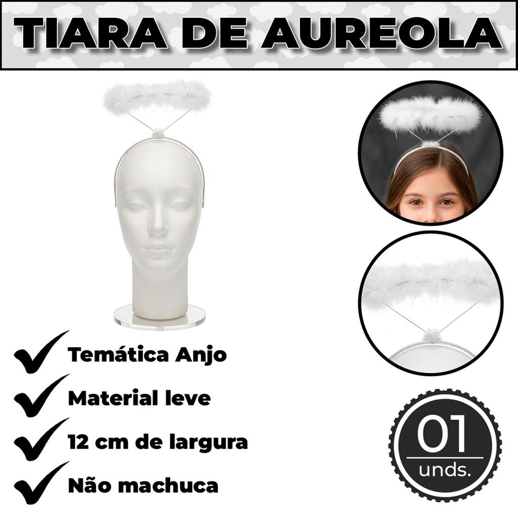 Fantasia de Anjo Infantil Unissex com Túnica Auréola e Asa 2 a 16 anos