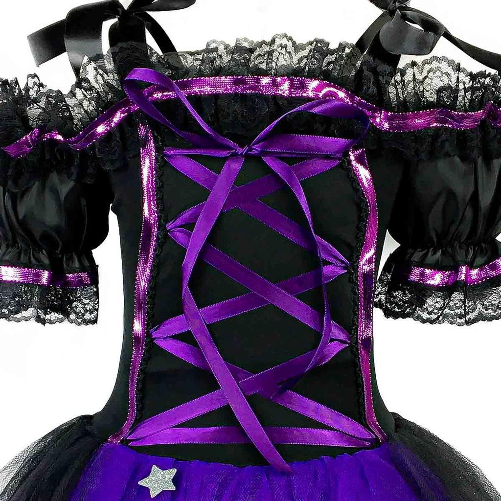 Itens inclusos: 01 Vestido Tamanhos: PP - Numeração de roupa 32 a 34. P - Numeração de roupa 36 a 38. M - Numeração de roupa 40 a 42. G - Numeração de roupa 44 a 46. GG - Numeração de roupa 46 a 48. XGG - Numeração de roupa 48 a 50 Ficou na dúvida de qual tamanho escolher? Sempre indicamos a escolha de um tamanho maior pois é mais fácil fazer um ajuste, caso necessário. Especificações Técnicas Material: Helanca Produto: Produto novo, na embalagem. Cor: Roxo Produto a pronta entrega! Produto Original Essa linda fantasia de bruxa adulta é composta por um luxuso vestido, fabricado com tecidos de altíssima qualidade trazendo conforto e beleza á fantasia, para você aproveitar o dia mais sombrio do ano! O vestido é composto por um corpete de helanca, com fitas roxas tranpassadas no busto imitando um corsellet, mangas bufantes e alças de fitas de cetim para prender no ombro com acabamento em rendas nas mangas e busto. A saia é super rodada e armada, sendo uma camada em tecido cetim e a outra em tule com aplicações em EVA de estrelas e borboletas pela saia do vestido. Confira os detalhes e garanta já o seu! Linha Luxo Temática Halloween Não Pinica Lavar á Mão