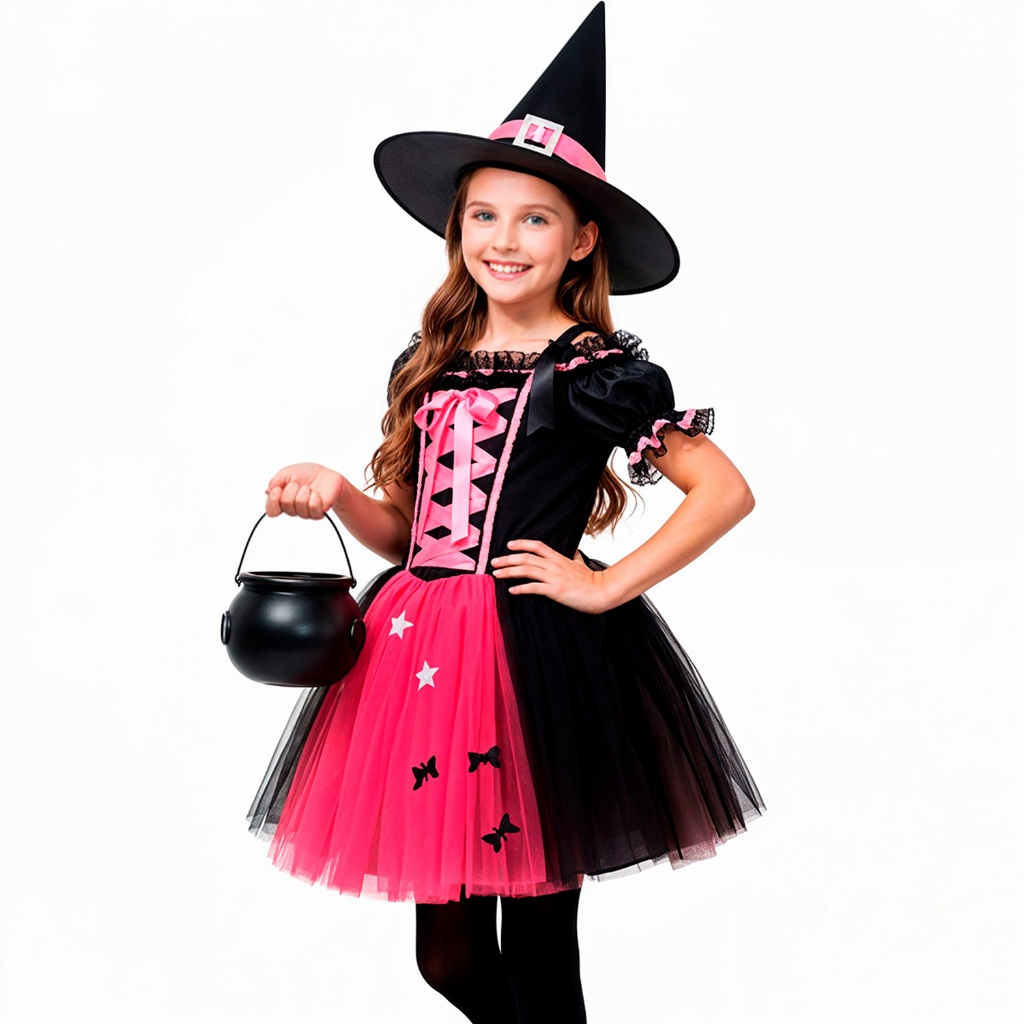 Fantasia de Halloween Infantil Bruxinha Chic de Luxo