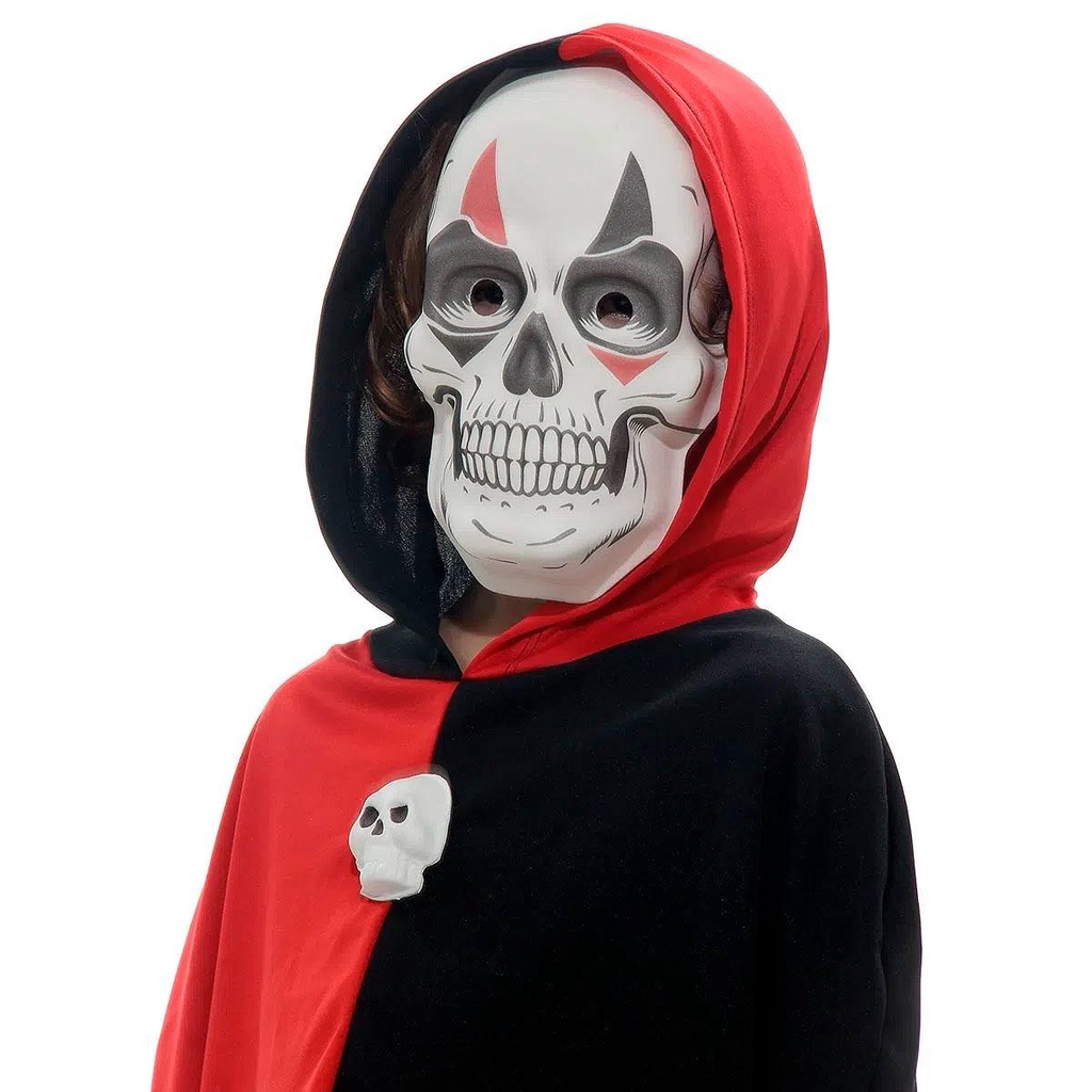 Fantasia de Halloween Menino Caveira do Palhaço Arlequim c/ Máscara