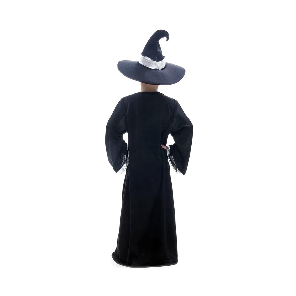 Itens inclusos: 01 Tunica Longa 01 Chapéu Tamanhos: P - Numeração de roupa 2 a 4, para crianças que tenham até 99 cm de altura, dos pés a cabeça. M - Numeração de roupa 5 a 8, para crianças que tenham de 100 a 119 cm de altura, dos pés a cabeça. G - Numeração de roupa 9 a 12, para crianças que tenham de 120 a 140 cm de altura, dos pés a cabeça. Ficou na dúvida de qual tamanho escolher? Sempre indicamos a escolha de um tamanho maior pois é mais fácil fazer um ajuste, caso necessário. E por ser para criança, a fantasia irá durar por mais tempo conforme ela for crescendo. Especificações Técnicas Fabricantes: Sulamericana Produto: Fantasia nova, na embalagem. Cor: Preto Fantasia com selo de autenticidade Produto Original e Licenciado Produto a pronta entrega! A fantasia de feiticeiro infantil, é composta por uma túnica longa com mangas longas e detalhes metálicos prata! Para a fantasia ficar ainda mais completa, acompanha um chapéu pontudo combinando com a fantasia! Ideal para festas de Halloween, Dia das Bruxas, Cosplay e muito mais! Temática de Halloween Não Esquenta Não Pinica Confortavel
