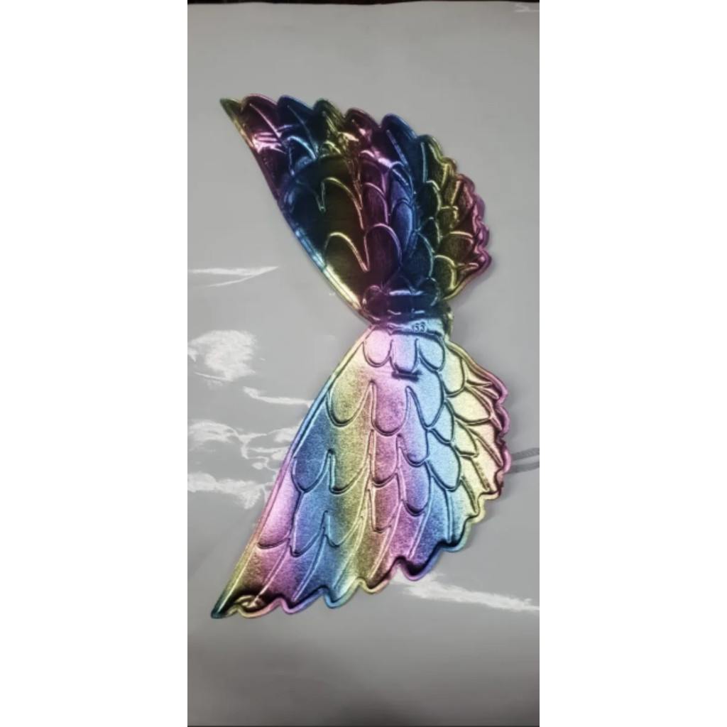 Fantasia de Unicornio Fantasia Infantil tiara+asa Fantasia para ser utilizada em casa para brincar, em aniversários, carnaval, Halloween, dia de fantasia na escola, desfile temático, teatro, etc. As fantasias despertam a imaginação e criatividade da criançada! Tiara de Unicórnio Topo: Possui um chifre espiralado com cores vibrantes em degradê (azul, rosa, amarelo e verde) e um acabamento metálico brilhante. Na base do chifre, há um pequeno detalhe de unicórnio branco com asas. Orelhas: Duas orelhas arredondadas cobertas por paetês coloridos que brilham conforme a luz bate, criando um efeito de escamas mágicas. Extensões de Cabelo: Presas à tiara, há duas mechas de cabelo sintético liso com as cores do arco-íris, que aparecem curvadas de forma simétrica na imagem. Asas Mágicas Design: As asas são largas e possuem um padrão de costura que imita camadas de penas sobrepostas. Cores e Acabamento: Apresentam um efeito holográfico e multicolorido, transicionando entre tons de roxo, azul, verde, amarelo e rosa. O material tem um brilho acetinado/metálico intenso. O estilo geral da imagem é lúdico, vibrante e ideal para catálogos de fantasias ou itens de festa.