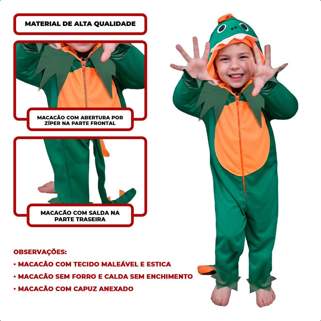 Itens inclusos:01 Macacão com capuz e cauda Tamanho: P - Numeração de roupa 2 a 4 anos M - Numeração de roupa 5 a 8 anos G - Numeração de roupa 9 a 12 anos GG - Numeração de roupa 13 a 16 anos Ficou na dúvida de qual tamanho escolher ? Sempre indicamos a escolha de um tamanho maior pois é mais fácil fazer um ajuste, caso necessário. Especificações Técnicas Material: 100% Poliéster Cor: Verde e Laranja Produto a pronta entrega! Produto original! Fantasia de Dinossauro em Helanca Premium – Conforto, Qualidade e Diversão que Cresce com a Criança! Destaque-se com a fantasia de dinossauro que é muito mais do que só bonita! Fabricada em helanca premium de altíssima qualidade, ela oferece elasticidade, conforto e toque super macio, sem pinicar ou incomodar — perfeita para brincar, correr e até dormir! Diferente das opções comuns do mercado, nossa fantasia foi pensada para durar e acompanhar o crescimento da criança: Modelagem ampla que veste por mais tempo Costuras reforçadas para resistir à diversão do dia a dia Vestido com Babado: Os babados volumosos adicionam um charme especial e movimento ao vestido, deixando-o ainda mais bonito e festivo. Zíper grande e resistente, fácil de vestir e que não enrosca Com um visual cheio de charme e detalhes incríveis: Capuz com o rostinho do dinossauro e dentes em feltro Espinhos macios e cauda costurada com cuidado Ideal para festas, carnaval, halloween ou como um pijama divertido e confortável Uma fantasia que une conforto, qualidade e diversão — feita para durar, encantar e acompanhar cada fase da infância!