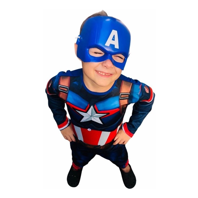 Fantasia Do Capitão América Fantasia contém: - Enchimento no peitoral e nos ombros - Escudo do Capitão América de Plastico - Mascara de Plastico Tamanhos: P M G GG P - recomendamos para crianças de 1 a 2 anos M - recomendamos para crianças de 3 a 4 anos G - recomendamos para crianças de 5 a 6 anos GG - recomendamos para crianças de 7 a 8 anos Medidas: P - Comprimento 80, Largura 29, Cavalo 48, Manga 34 M - Comprimento 91, Largura 31, Cavalo 52, Manga 38 G - Comprimento 100, Largura 35, Cavalo 56, Manga 44 GG - Comprimento 113, Largura 40, Cavalo 59, Manga 47 Qualquer duvida entre em contato conosco. Garantia do vendedor: 30 dias