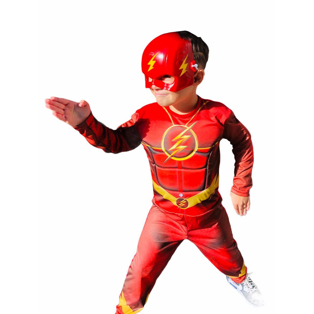 Fantasia Do Flash Longa Com Enchimento E Mascara De Plastico
