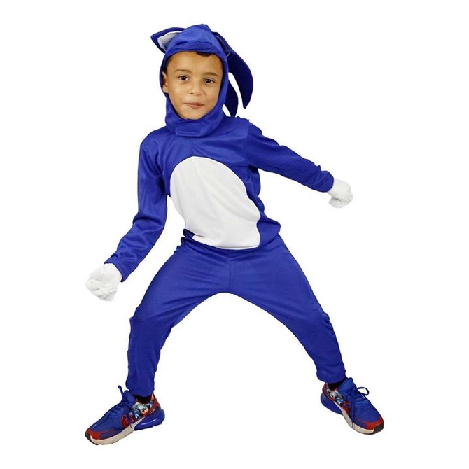 Fantasia do Sonic Infantil de Luxo Com Máscara e Luva