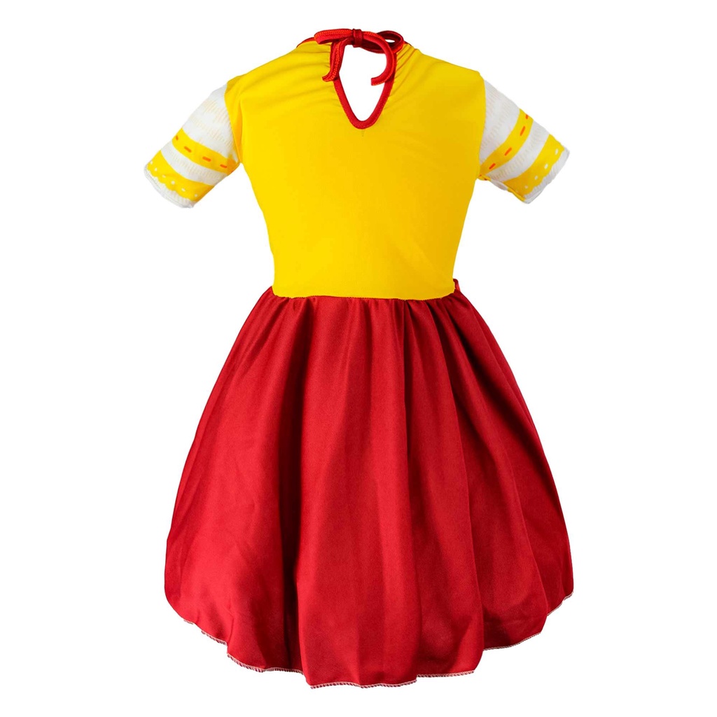Sobre a Fantasia Dolores Madrigal Vestido Tipo: Fantasia Menina Gênero: Infantil Feminino Sua pequena vai se encantar com essa fantasia da Dolores! A fantasia da Dolores Madrigal do filme Encanto é uma opção perfeita para as crianças que adoram a personagem e desejam se vestir como ela. O vestido é feito de tecido 100% poliéster, que garante durabilidade e um ótimo acabamento. O tecido é leve e superconfortável, e tem uma pequena abertura na parte de trás. Dolores Madrigal é uma personagem do filme Encanto, da Disney. Dolores é filha de Pepa e Félix Madrigal, ela tem o poder de escutar qualquer ruído ou conversa a quilômetros de distância. Esta fantasia é uma ótima escolha para qualquer ocasião de brincadeira ou festa temática de Encanto. Confira! Não esquenta Tecido superconfortável Tecido leve Não pinica A fantasia infantil que sua filha tanto sonhava para ir nas festas, com acabamento impecável e qualidade comprovada. A festa da sua pequena será com muita diversão e alegria, tudo perfeito para se tornar um dia inesquecível com a fantasia para meninas que amam o filme encanto. Aproveite e confira todas nossas fantasias para meninas com os melhores preços do mercado! Itens inclusos: 01 vestido Tamanhos: P - Numeração de roupa 2 a 4, para crianças que tenham até 99 cm de altura, dos pés a cabeça. M - Numeração de roupa 5 a 8, para crianças que tenham de 100 a 119 cm de altura, dos pés a cabeça. G - Numeração de roupa 9 a 12, para crianças que tenham de 120 a 140 cm de altura, dos pés a cabeça. Ficou na dúvida de qual tamanho escolher? Sempre indicamos a escolha de um tamanho maior pois é mais fácil fazer um ajuste, caso necessário. E por ser para criança, a fantasia irá durar por mais tempo conforme ela for crescendo. Especificações Técnicas Material: Fantasia 100% poliéster. Produto: Fantasia nova, na embalagem. Cor: Vermelho e Amarelo Produto a pronta entrega!