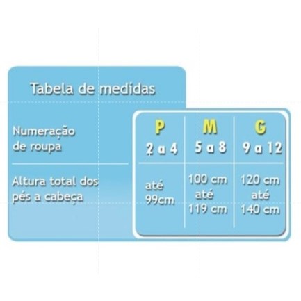 Itens inclusos na fantasia de Freddy Krueger: 01 Camiseta 01 Chapéu Tamanhos: P - Numeração de roupa 2 a 4, para crianças que tenham até 99 cm de altura, dos pés a cabeça. M - Numeração de roupa 5 a 8, para crianças que tenham de 100 a 119 cm de altura, dos pés a cabeça. G - Numeração de roupa 9 a 12, para crianças que tenham de 120 a 140 cm de altura, dos pés a cabeça. Especificações Técnicas Fabricantes: Sulamericana. Produto: Fantasia nova, na embalagem. Cor: Preto Acompanha 01 Chapéu de Veludo com fita de cetim e 01 camiseta de manga longa listrada 100% poliéster, ambas baseadas no personagem. Confira!