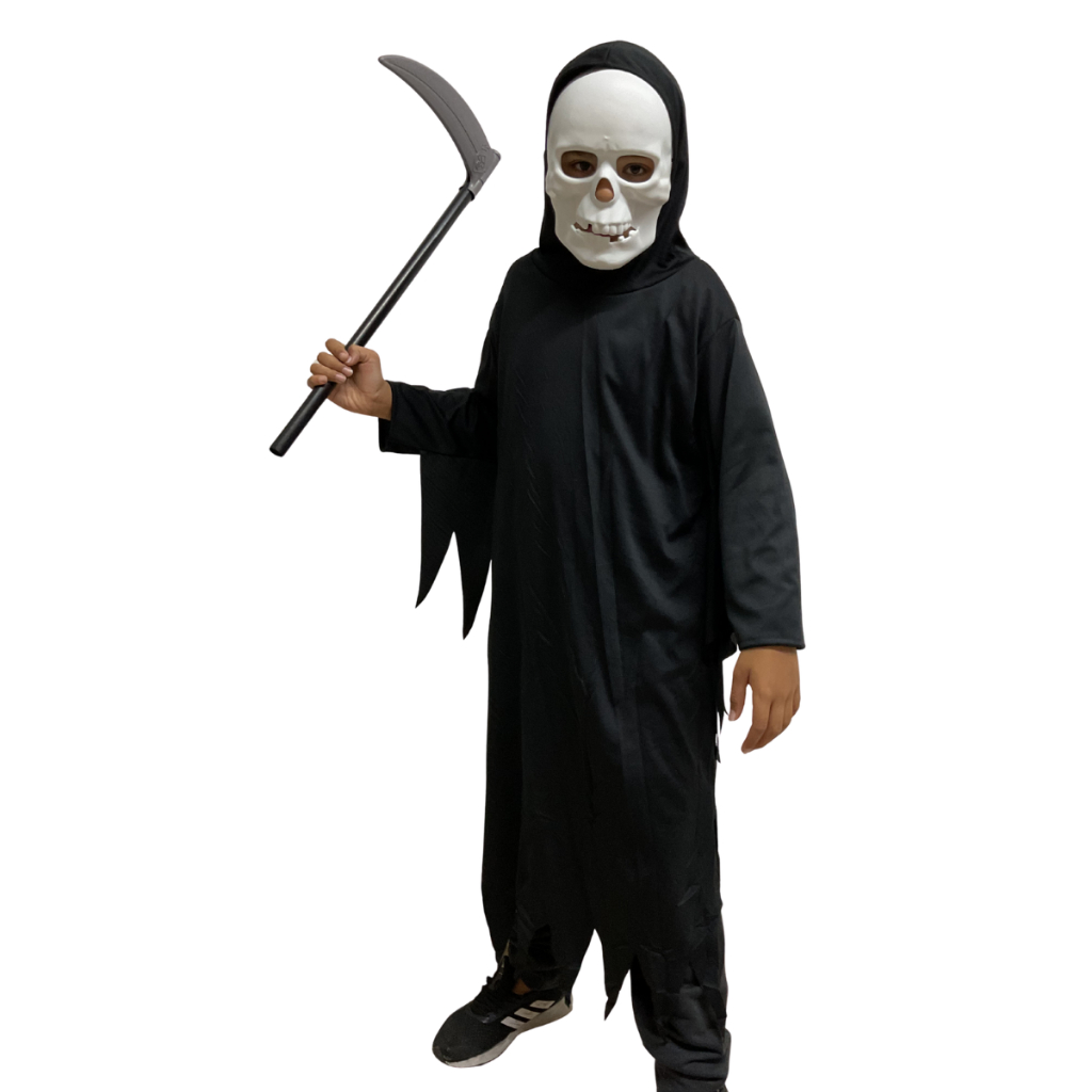 Fantasia Infantil Caveira Halloween Com Foice E Máscara