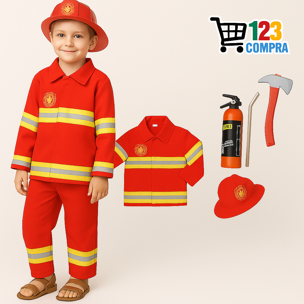 Fantasia Infantil de Bombeiro Completa com Acessórios – Para Crianças de 6 a 11 anos – Ideal para Festas, Carnaval e Hal