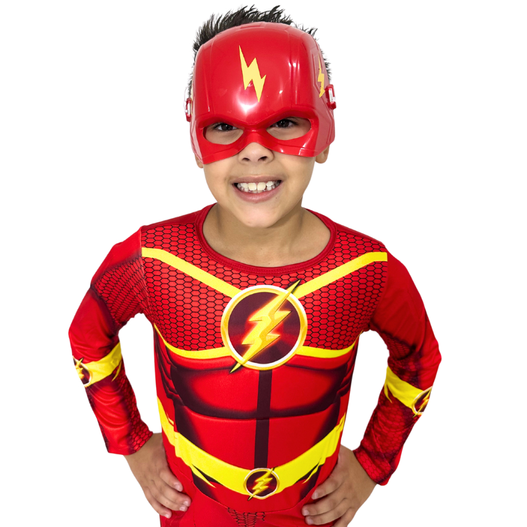 Fantasia Infantil Do Flash Longa Com Enchimento E Mascara De Plástico