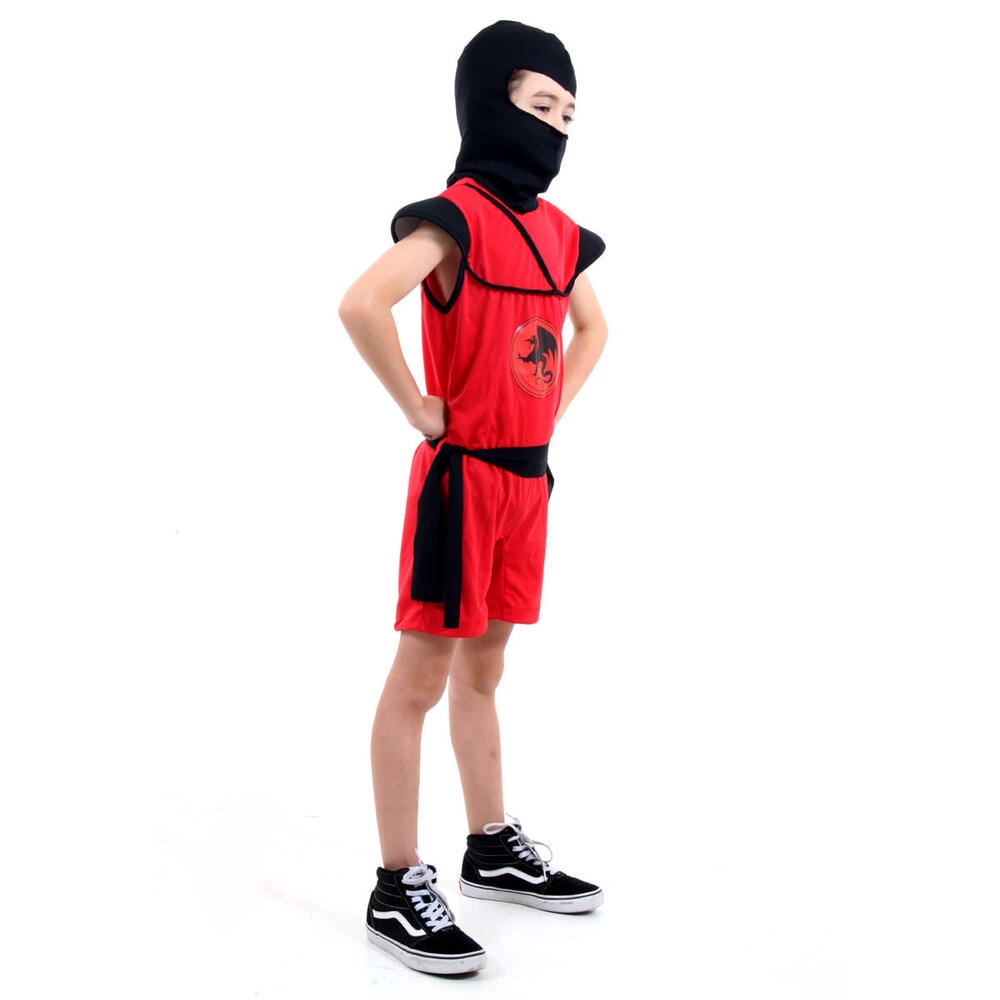 Fantasia Infantil Guerreiro Ninja Vermelho Curto Com Capuz