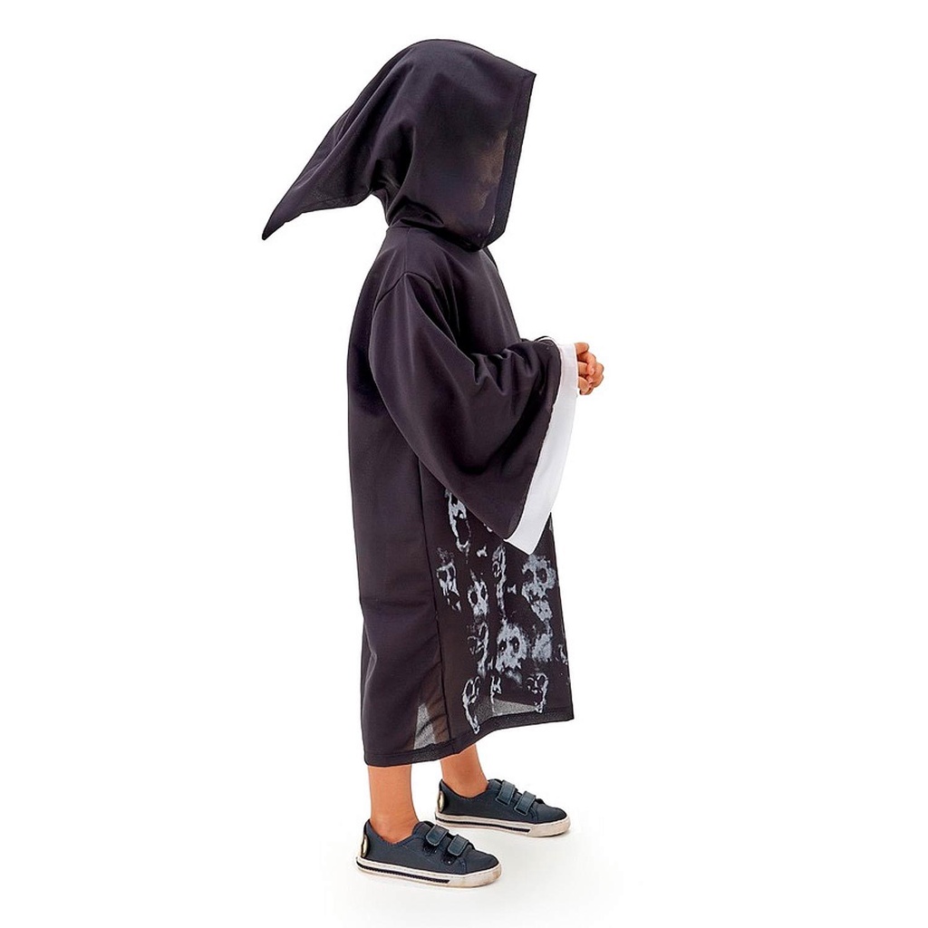 Fantasia Infantil Halloween Tunica Preta Com Capuz e Caveiras