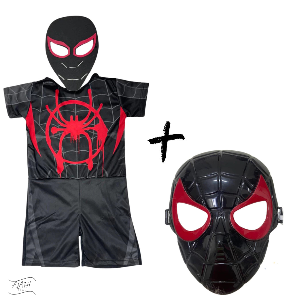 Fantasia Infantil Homem Aranha Miles Morales Com 2 Mascaras - Envio Imediato