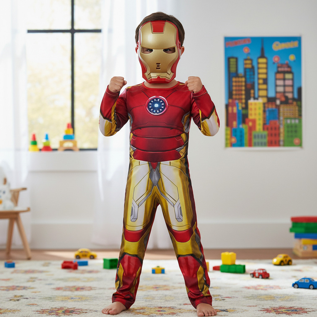 Fantasia Infantil Homem De Ferro Longa C Enchimento E Máscar