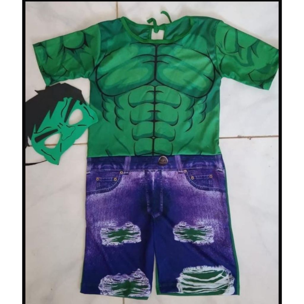 Fantasia Infantil Hulk Macacao Curto e Mascara Eva