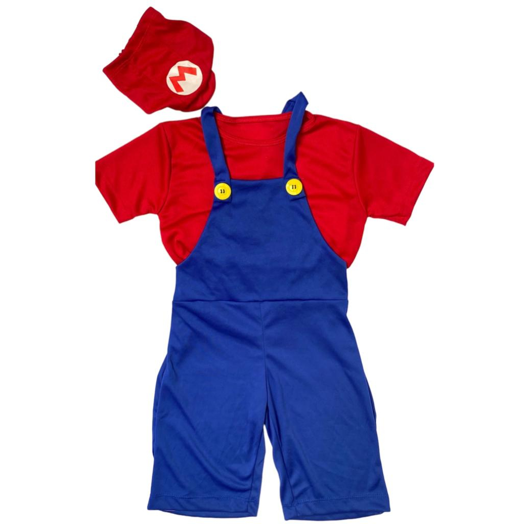 Fantasia Infantil Mario Bros Macacao Acompanha Bone de Tecido Estampado Festas Aniversario