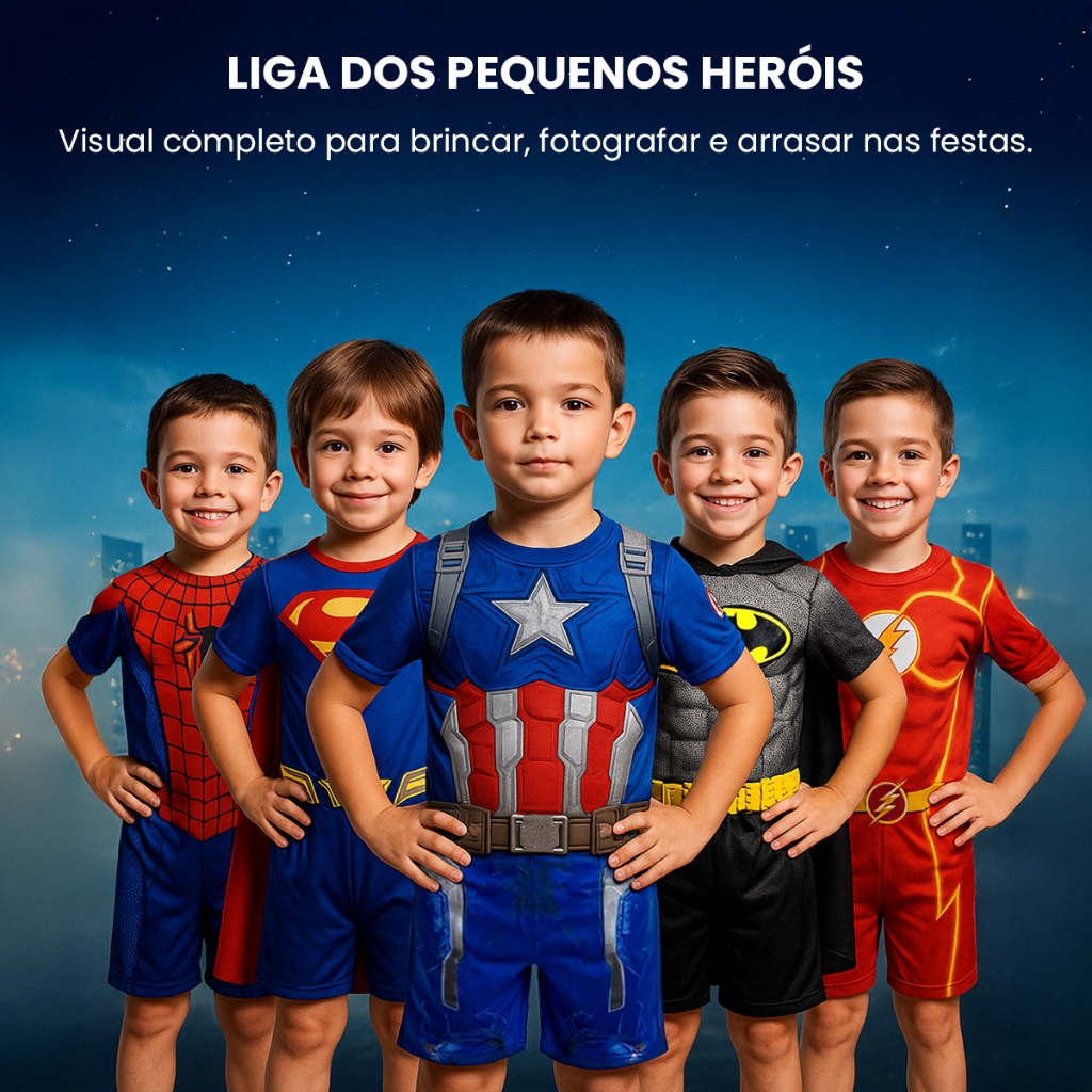 Fantasia Infantil Menino Super Heróis Aniversário Hulk Homem-Aranha Superman Batman Flash