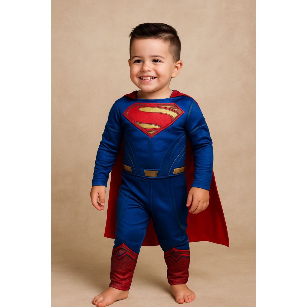 Fantasia Infantil Menino Superman longa com Enchimento e MáscaraLiga da Justiça