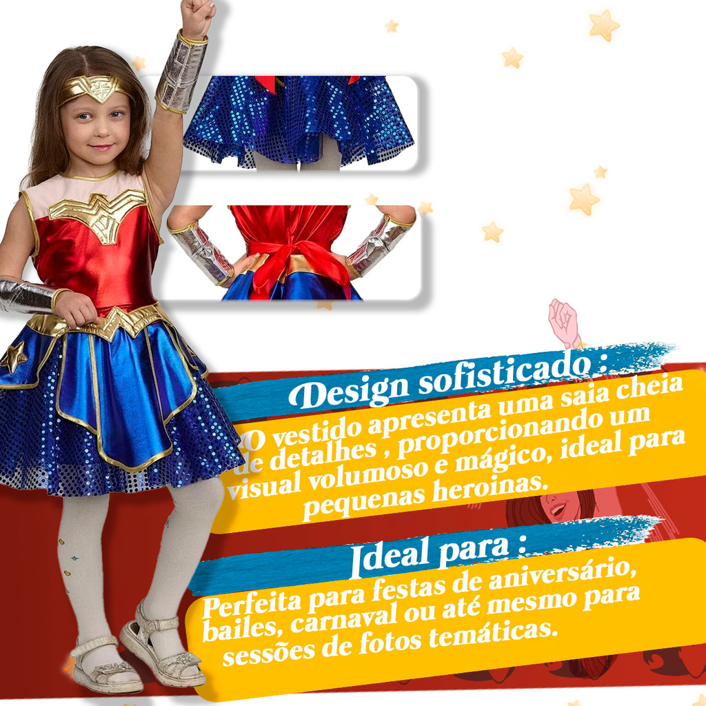 FANTASIA INFANTIL MULHER MARAVILHA MENINA CARNAVAL FESTAS