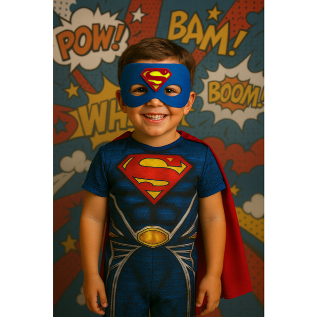 Fantasia Infantil Superman Menino 👶 Encante seu pequeno com essa fantasia completa Superman um personagem bem divertido! Ideal para festas escolares, aniversários, Carnaval, teatrinhos ou para soltar a imaginação em casa. Confortável, linda e com ótimo caimento, é a escolha certa para quem busca um look infantil temático com qualidade, conforto e estilo. 🎁 O que vem no kit: ✅ 1 Macacão ✅ 1 Mascara em EVA Tamanhos: P Veste 2 anos M Veste 4 anos G Veste 6 anos GG Veste 8 anos Medidas aproximada : P- Altura: 60cm / busto: 30cm M- Altura: 67cm / busto: 35cm G- Altura: 69cm / busto: 36cm GG- Altura: 74cm / busto: 38cm 🧼 Cuidados com a peça: Não usar alvejantes Secar à sombra Não deixar de molho Lavagem preferencial à mão para preservar os detalhes 📦 Envio imediato! Aproveite o estoque disponível e garanta já a fantasia do Superman com FRETE GRÁTIS e muito amor envolvido. Fantasia super confortável para os meninos ficarem mais lindos