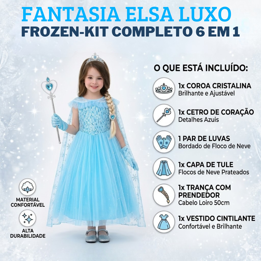 | Fantasia Infantil Vestido Elsa Frozen Luxo Com Capa E Acessórios este produto | R$ 129,90 | 19% | 5.0/5 | — |