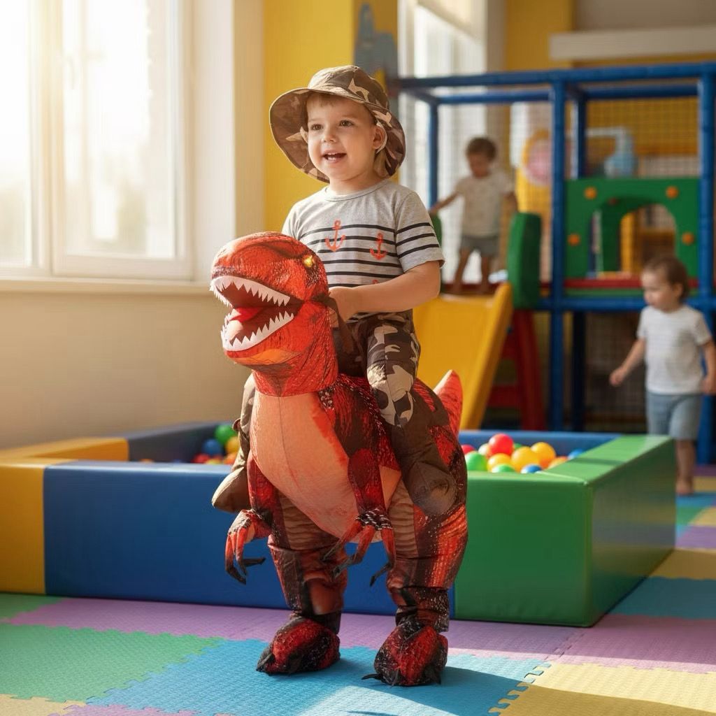 Fantasia divertida para crianças com design de dinossauro raptor vermelho, ideal para festas, eventos escolares e brincadeiras em casa. ESPECIFICAÇÕES - Fantasia de montar, simulando que a criança está cavalgando um dinossauro. - Tamanho infantil, ajustável para diferentes idades. - Material leve e confortável para uso prolongado. RECOMENDAÇÕES - Perfeito para festas temáticas, carnaval e apresentações. - Recomendado para meninos e meninas. - Fácil de vestir e retirar.