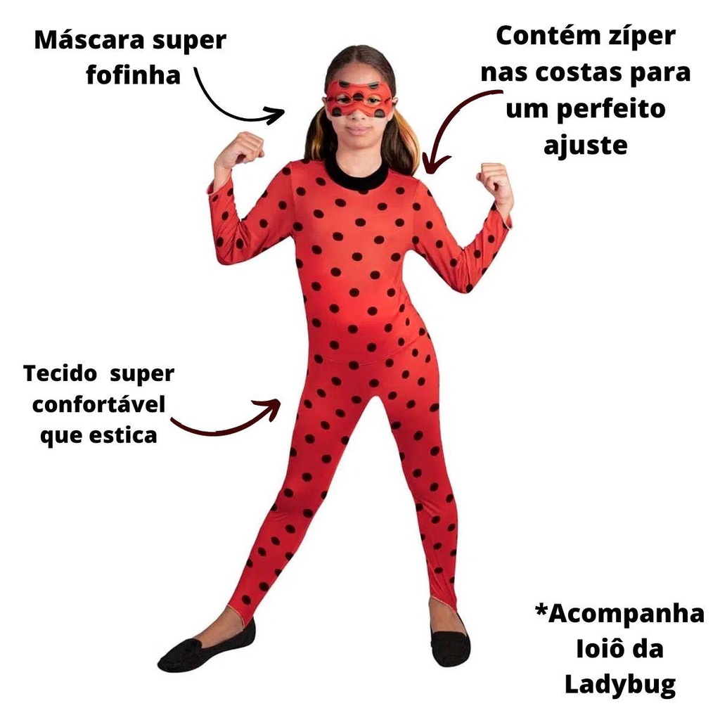 Fantasia Ladybug Infantil Original Miraculous de Luxo Com Máscara e Ioiô