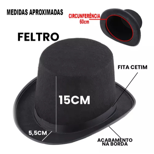 Fantasia Magico Adulto Cartola, Varinha, Luva e Gravata 4 pçs Feminino e MasculinoItens Inclusos na Fantasia de Magico1- Cartola de Feltro 15cm1- Par de Luvas de 20 cm (branca ou preto)1- Varinha1- Gravata Borboleta (preto)