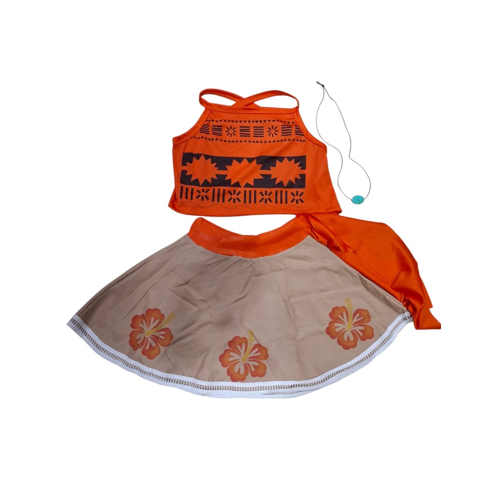 Fantasia Moana Infantil conjunto top e saia com Colar 1 a 8 anos