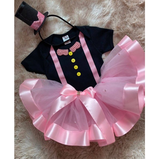 KIT COM 4 PEÇAS. Body com tecido de excelente qualidade em tecido suedine 100% algodão, aquele tecido que molda no corpo do bebê pra ele ficar confortável. Sem coceiras e alergias, tecido próprio para bebê. Tamanhos P M G. Saia tule, fabricação própria de primeira linha; com 4 camadas, elástico da cintura regulável, 15 a 17cm de comprimento. Cartola de EVA na tiara ou elástico com detalhes de pérolas. Suspensório infantil regulável super prático e confortável. Observação: Caso não encontre o modelo desejado nesse anuncio, nos contate, temos vários modelos exclusivos apronta entrega! Instruções de lavagem para preservar suas peças: ✓ lavar na mão ✓ usar sabão neutro ✓ não usar alvejante ✓ não torcer ✓ secar a sombra ✓ não usar ferro de passar. O produto é feito de forma artesanal, é muito importante seguir as instruções acima para que a qualidade do produto não seja alterada.
