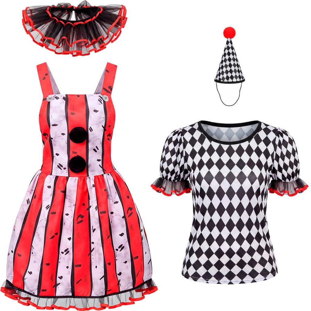 Fantasia Palhaca Halloween Adulta Feminina Terror Assassina de Luxo com Vestido e Chapeu