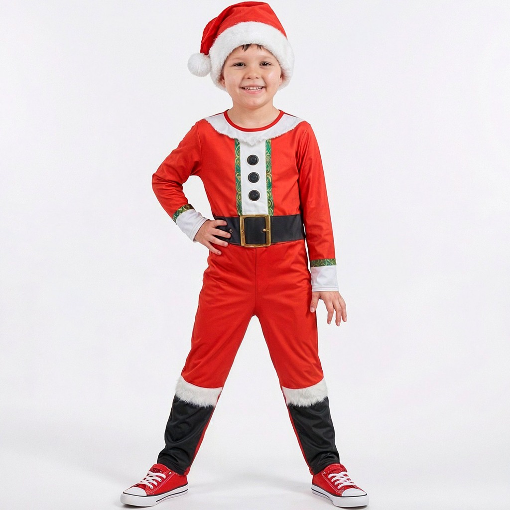 Fantasia Papai Noel Infantil Longa Com Gorro