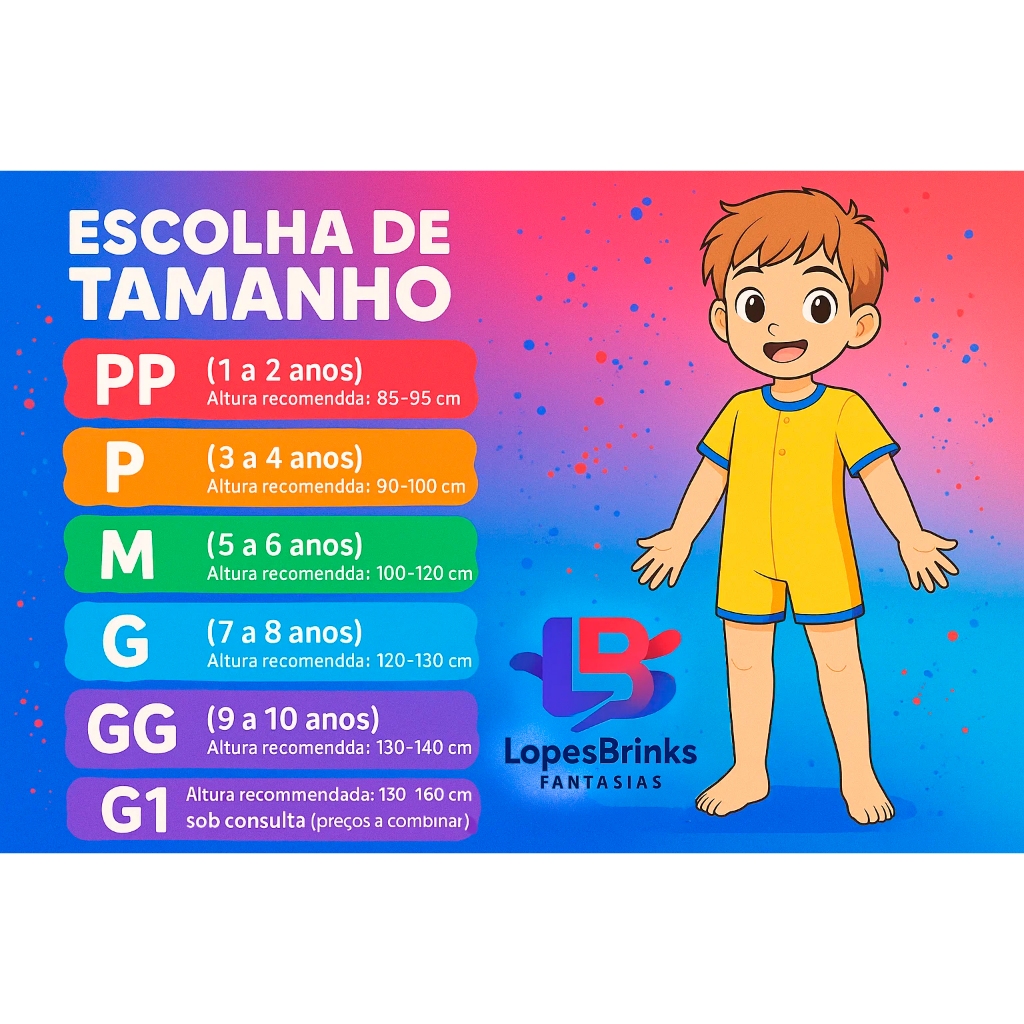 Fantasia Infantil Herói de Pijama Menino Gato com rabo e mascara mascara Luxo Plush Premium. Transforme seu pequeno no herói Menino Gato com esta incrível fantasia inspirada nos Heróis e Heroínas de Pijama! Características do Produto Design Autêntico: Macacão com estampa vibrante que remete ao traje clássico do Menino Gato. Conforto Garantido: Confeccionado em tecido leve e flexível, proporcionando liberdade de movimento. Acessórios Inclusos: Acompanha máscara em Plush Premium, completando o visual do personagem. Fácil de Vestir: Fechamento prático que facilita na hora de colocar e tirar. Tamanhos Disponíveis PP (1 a 2 anos): Altura recomendada: 85-95 cm P (3 a 4 anos): Altura recomendada: 90-100 cm M (5 a 6 anos): Altura recomendada: 100-120 cm G (7 a 8 anos): Altura recomendada: 120-130 cm GG (9 a 10 anos): Altura recomendada: 130-140 cm Ocasiões Perfeitas * Festas à fantasia e aniversários temáticos * Carnaval e Halloween * Apresentações escolares e eventos cosplay * Brincadeiras do dia a dia * Pijama Palavras-chave para Melhor Visibilidade fantasia infantil Menino Gato, fantasia Heróis e Heroínas de Pijama menino, fantasia com máscara de tecido, fantasia Carnaval menino, fantasia Halloween infantil, fantasia cosplay infantil Envio Rápido e Seguro Produto com pronta entrega. Enviamos em até 4 dias úteis após a confirmação da compra - pois conferimos todos os detalhes para não haver erros, normalmente conseguimos enviar em até 24 horasúteis após a confirmação da compra. Lavagem: 1 - água morna até 30º. 2 - Lavar com cores similares, separar as roupas claras das escuras, por tipo de tecido . 3 - Vire a fantasia do avesso e coloque a fantasia dentro de um saco de tecido ou fronha para não danificar e durar mais. 4 - Coloque um amaciante no último ciclo do enxágue. 5 - Se for necessário, passe com temperatura moderada. *Não alvejar. *Não deixar de molho. *Não secar na secadora. Garanta já a fantasia do menino gato favorito do seu filho e proporcione momentos inesquecíveis de diversão e imaginação!!