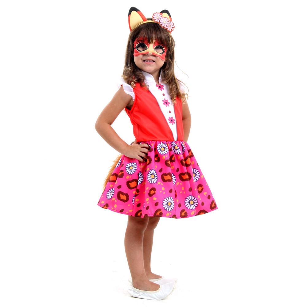 Fantasia Raposa Vestido Infantil Com Máscara E Tiara