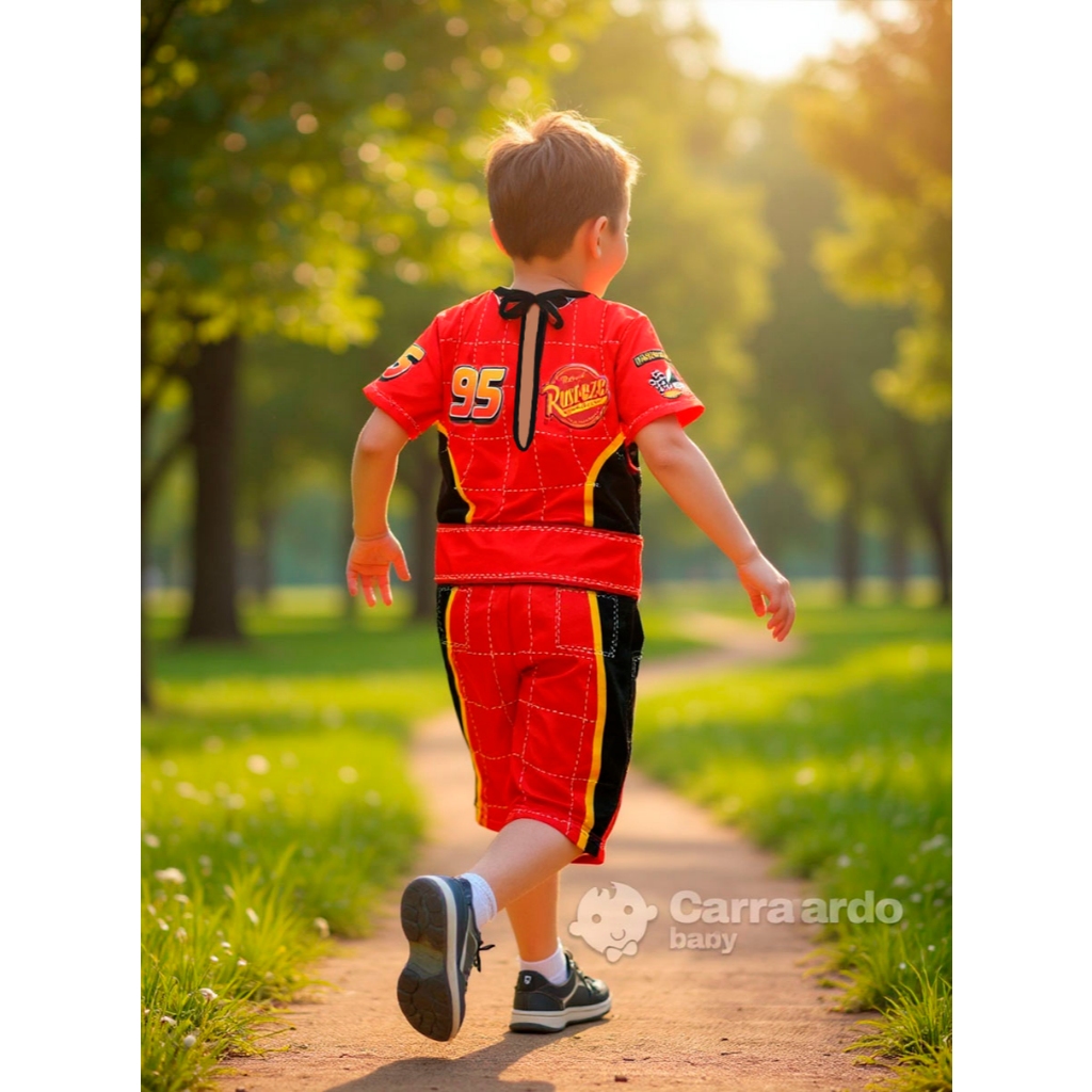 Fantasia Roupa Relâmpago Mcqueen Carros Piloto Infantil Barata Temática Festa Aniversário Premium