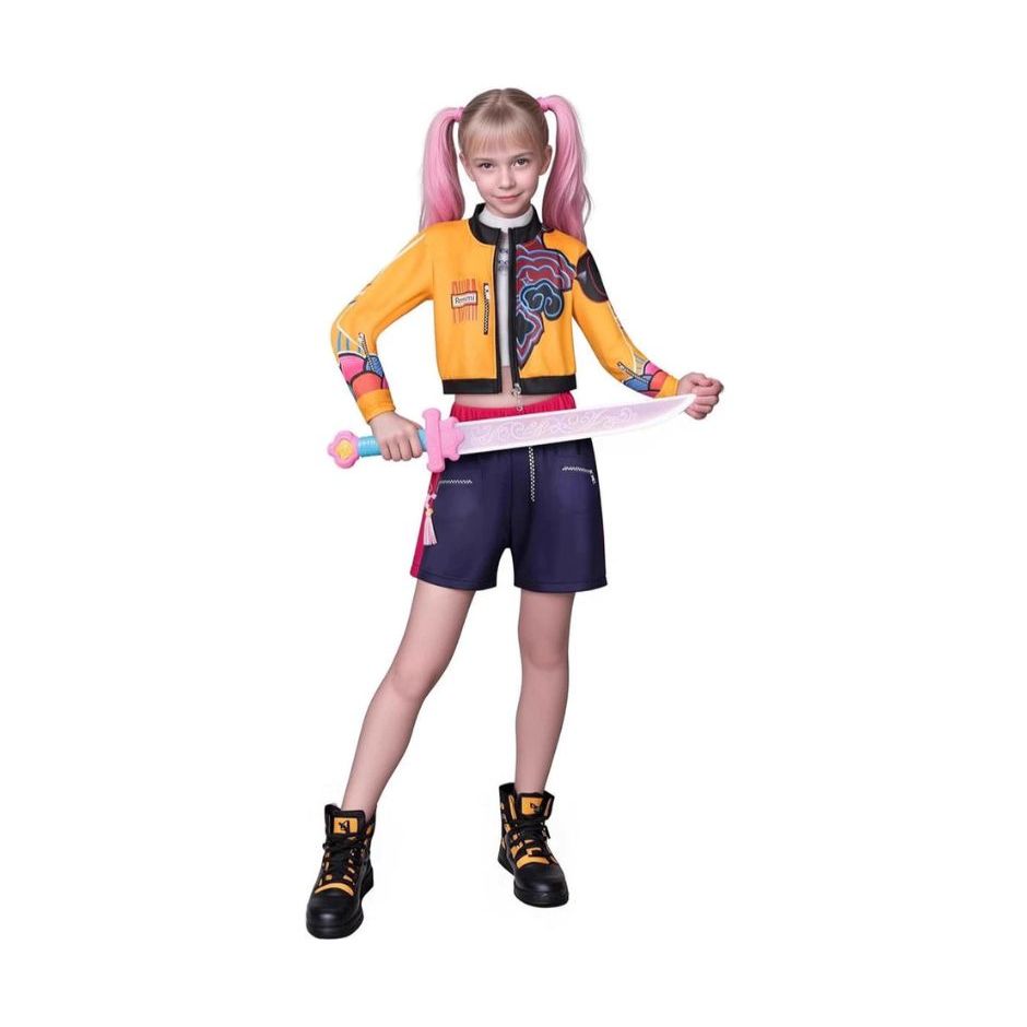 Conjunto completo de cosplay inspirado em grupo de meninas K-POP para um visual de palco "Demon Hunters". Perfeito para carnaval, festas de Halloween , performances de dança, eventos de cosplay, e festa a fantasia. Design de agarrar atenção com design detalhado para recriar seu personagem favorito do caçador pop. Materiais de alta qualidade e alfaiataria para conforto e durabilidade durante o desgaste e movimento. Inclui 3 peças Lembrete amigável: Fantasia de Costume destinada ao entretenimento e fins decorativos. Verifique a tabela de tamanhos antes de fazer o pedido. Recomenda-se lavar à mão. Não é adequado para crianças menores de 3 anos.