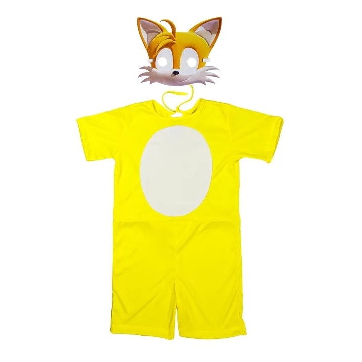 Fantasia Sonic Menino Infantil Amarelo Roupa Tails Longo Com Máscara Festa Carnaval Halloween