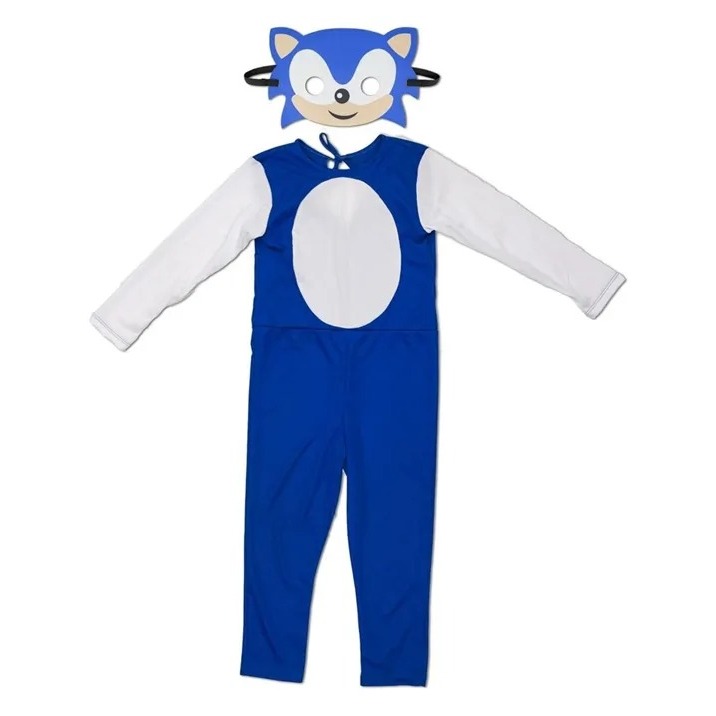 Fantasia Sonic Menino Infantil Longa com Máscara Festa Carnaval Halloween